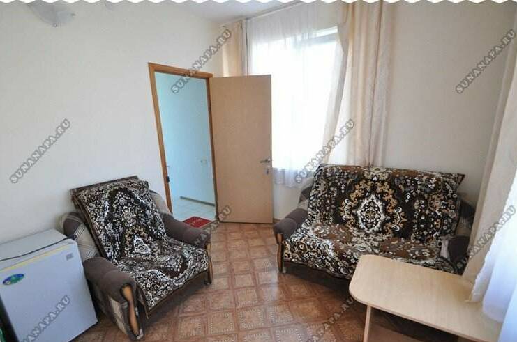 На первом этаже мини-гостиницы «Яна» расположены один большой номер, состоящий из 3-х комнат и отдельной кухней, лоджией на свежем воздухе и отдельным сан. узлом. Идеально подходит для большой кампании и рассчитан на проживание около 8 человек. Имеются парковочные места (бесплатно), песочница и бассейн для детей, много деревьев и цветов. 10−15 мин размеренной походкой до галечного пляжа.