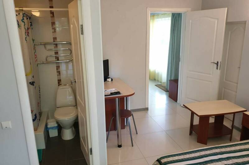Каждый номер имеет отдельный вход на этаже со своим патио и выходом на террасу оснащенной столиком и легкими креслами. Соседи не мешают друг другу и если нет желания общаться, то можно провести отдых уединенно. Глубокий бассейн с детской зоной освежит в жаркий полдень, детская площадка для маленьких, настольный теннис и футбол, собственная летняя кухня с посудой, кулером для воды и всей необходимой кухонной техникой, обустроенная зона барбекю. Бесплатный WI-FI на всей территории.